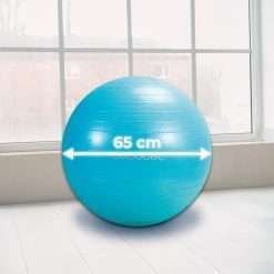 Pelota de fitness de 65 cm de diámetro para realizar ejercicios de tonificación y fortalecimiento además de estiramientos. Ideal para ejercitar piernas, brazos, abdomen, glúteo y espalda. Inflador incluido.