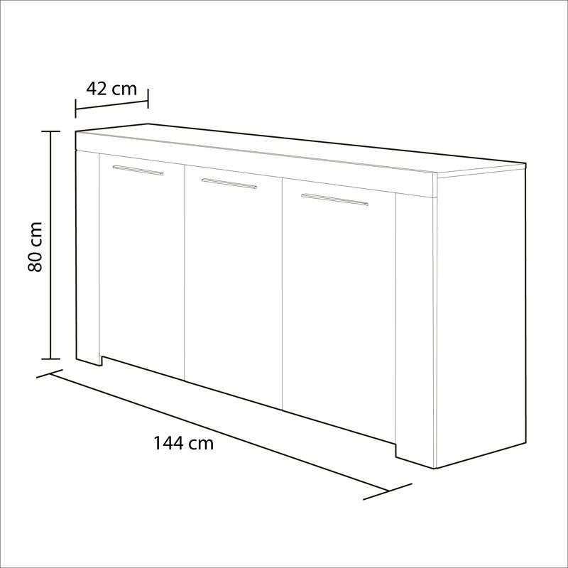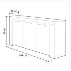 – Mueble: 80 cm (alto) x 144 cm (ancho) x 42 cm (prof.).