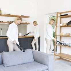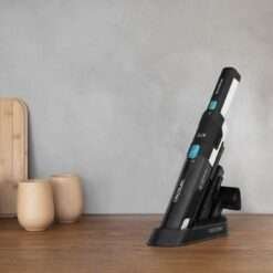 Aspirador de mano con motor Digital Brushless y gran potencia de succión de hasta 14 kPa. Incluye accesorio 2en1 para muebles y/o esquinas y accesorio para tapicerías.