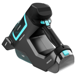 Aspirador de tapicecerias de mano con depósito de agua limpia y agua sucia por separado, cepillo de cerdas motorizado para desincrustar la suciedad y 25 minutos de autonomía.