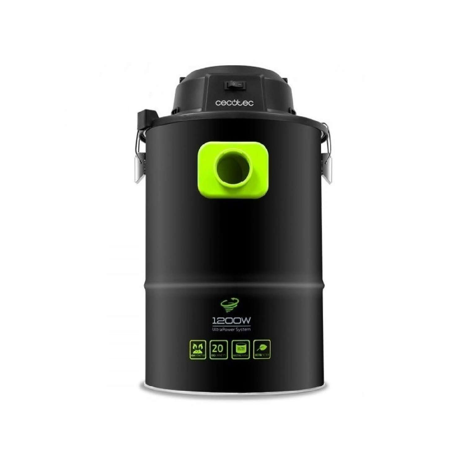 Aspirador de gran potencia ultrarresistente: apto para cenizas, carbón, y serrín, 1200 W, 20 litros de capacidad, boquilla y manguera metálicas.