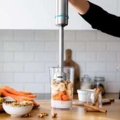 Batidora de mano con 1200 W de potencia máxima, perfecta para conseguir mezclas finas y homogéneas de forma rápida y sin esfuerzos.