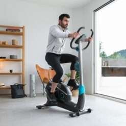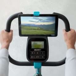 Bicicleta estática con resistencia magnética motorizada, ideal para completar tu entrenamiento más exigente, con soporte de dispositivos para amenizar tus sesiones, botella y portabotellas.