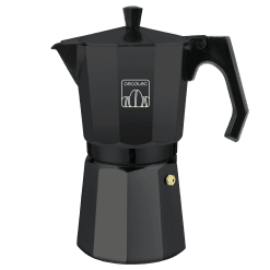 Cafetera italiana fabricada en aluminio de color negro, para hacer el café con el mejor cuerpo y aroma.