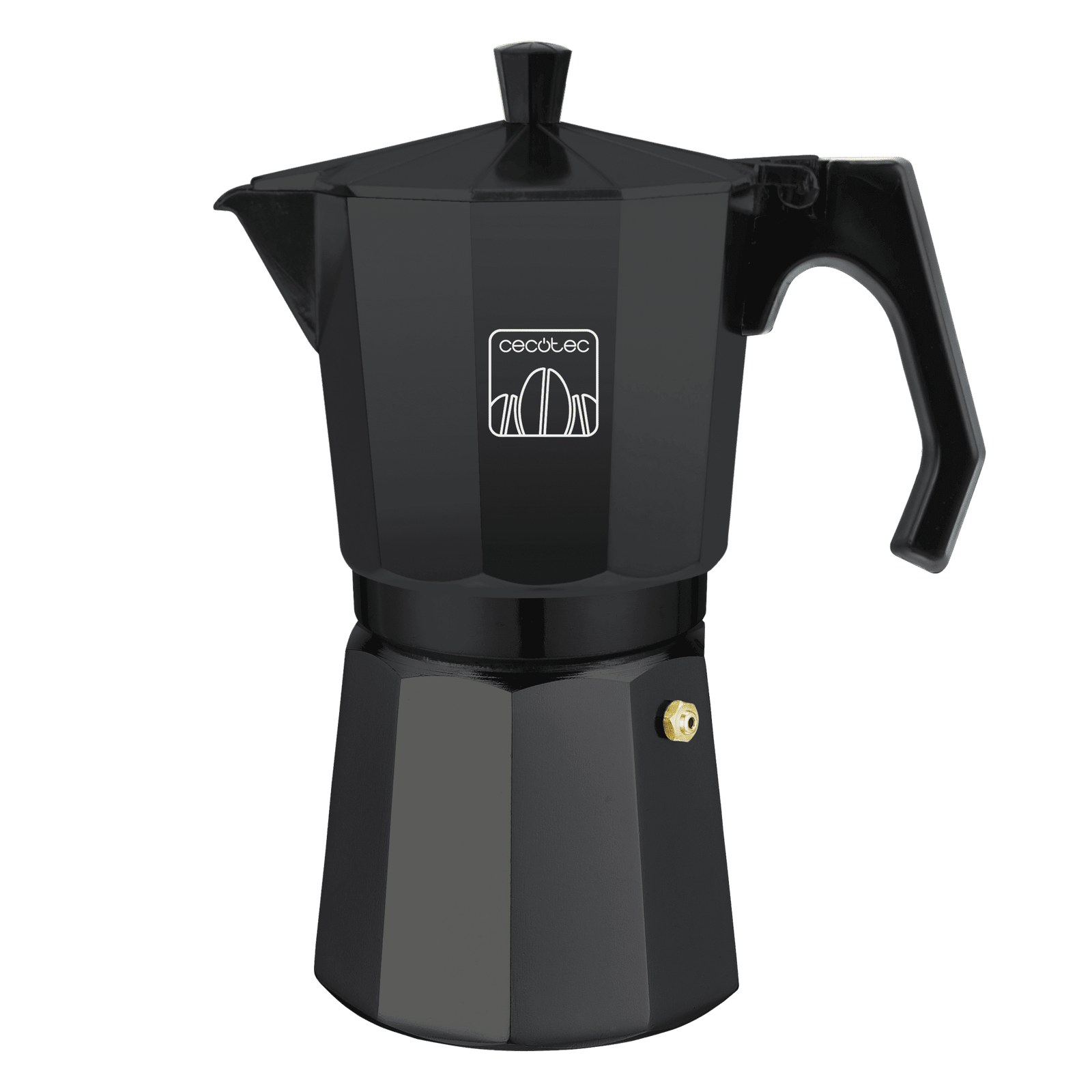 Cafetera italiana fabricada en aluminio de color negro, para hacer el café con el mejor cuerpo y aroma.