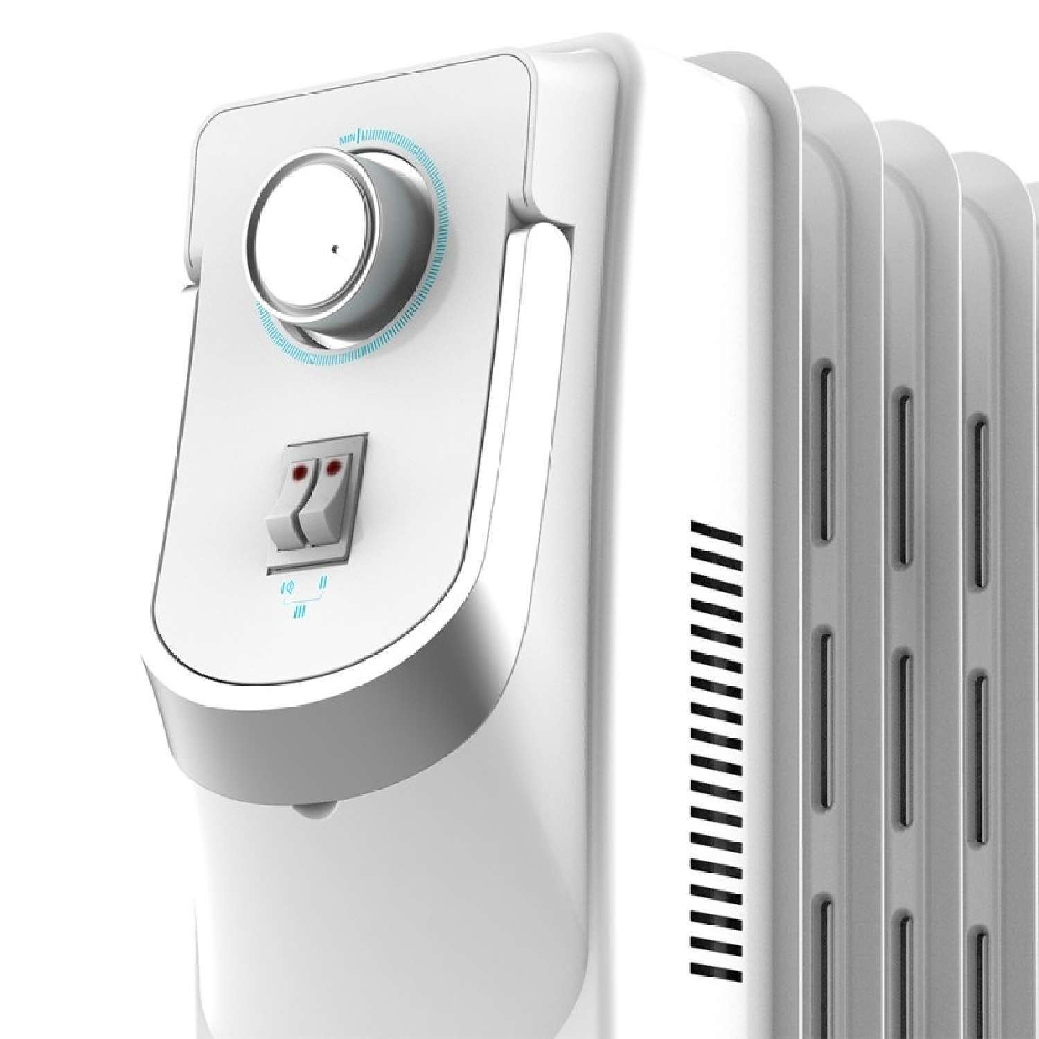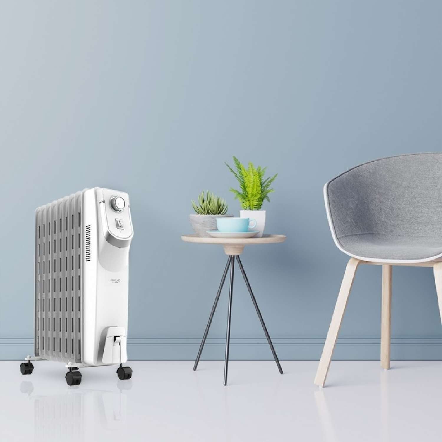 Radiador de aceite 360º de 9 módulos con 2000 W y termostato regulable.