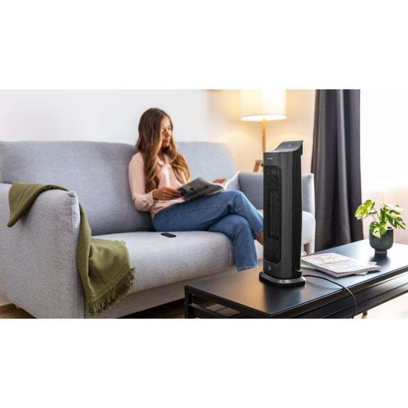 Calefactor cerámico de 2000 W con mando a distancia, pantalla LED, selección de temperatura, temporizador, oscilación, 3 modos, motor DC y triple sistema de seguridad.