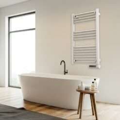 El toallero eléctrico de fluido cuenta con una gran potencia de 500 W capaces de calentar rápidamente tus toallas e incluso aumentar la temperatura del baño.