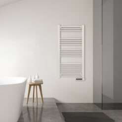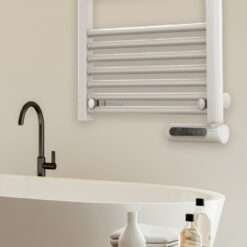 El toallero eléctrico de fluido cuenta con una gran potencia de 750 W capaces de calentar rápidamente tus toallas e incluso aumentar la temperatura del baño.