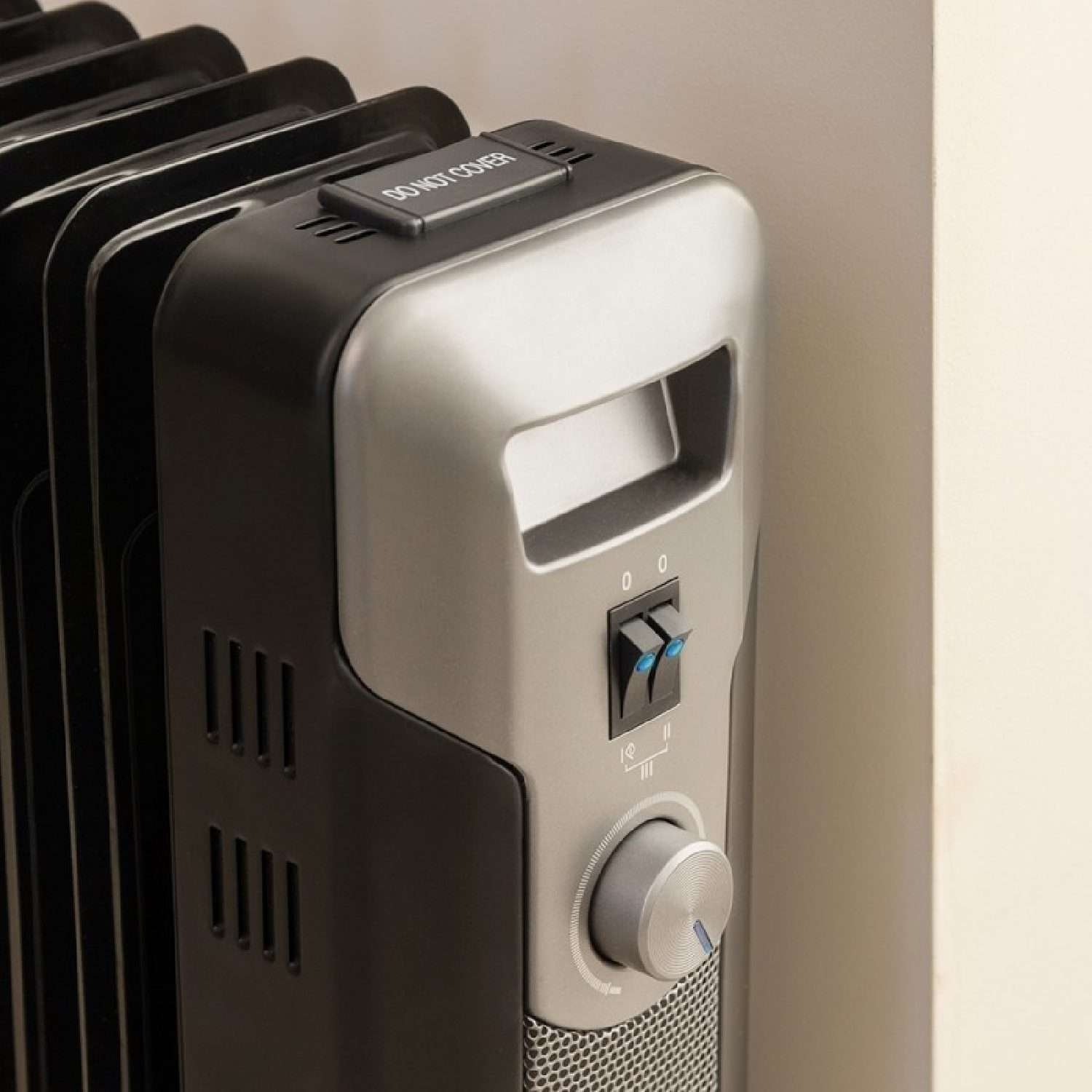 Radiador de aceite con 9 módulos de 150 x 580 mm ideal para habitaciones y salones de tamaño medio.
