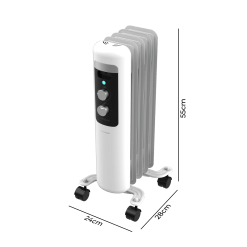 Ideal para habitaciones pequeñas. Radiador de aceite con 5 módulos de 120 x 500 mm, ideal para habitaciones y salones de tamaño pequeño.