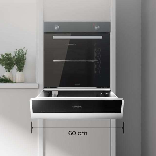 Calientaplatos integrable Edge de 60cm con temperatura ajustable, control mecánico y antideslizante. 59,4 X 54 X 15 cm
