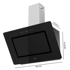 Campana decorativa Bolero Flux DT 908002 Glass Black A++ de 90cm de ancho, acabado frontal vidrio negro, chimenea inox, succión 800m3/h, Motor 220W, Clase A++, control táctil, 3 niveles de potencia, Booster, luz, filtro de carbono, Hand Movement Control y Smoke Sensor.