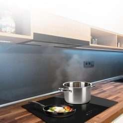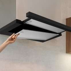 Campana extratora telescópica Flux TLM 603500 Black A de 60cm de ancho, acabado negro, potencia succión 350m3/h, Motor 70W, Clase A, control mecánico, 3 niveles de potencia y filtro de carbono.