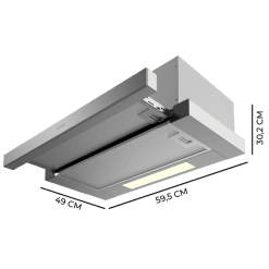 Campana extratora telescópica Flux TLM 603500 Inox A de 60cm de ancho, acabado inox, potencia succión 650m3/h, Motor 165W, Clase A, control mecánico, 3 niveles de potencia y filtro de carbono.