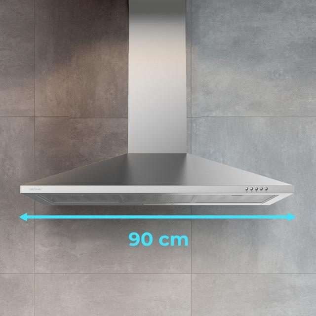 Gran amplitud: la campana extractora tiene 90 cm de ancho, tamaño ideal para que te despreocupes por el humo.