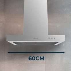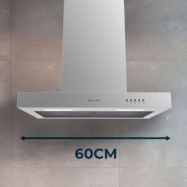 Gran ancho de campana: la campana extractora tiene un ancho de 60 cm, tamaño ideal para un funcionamiento óptimo.