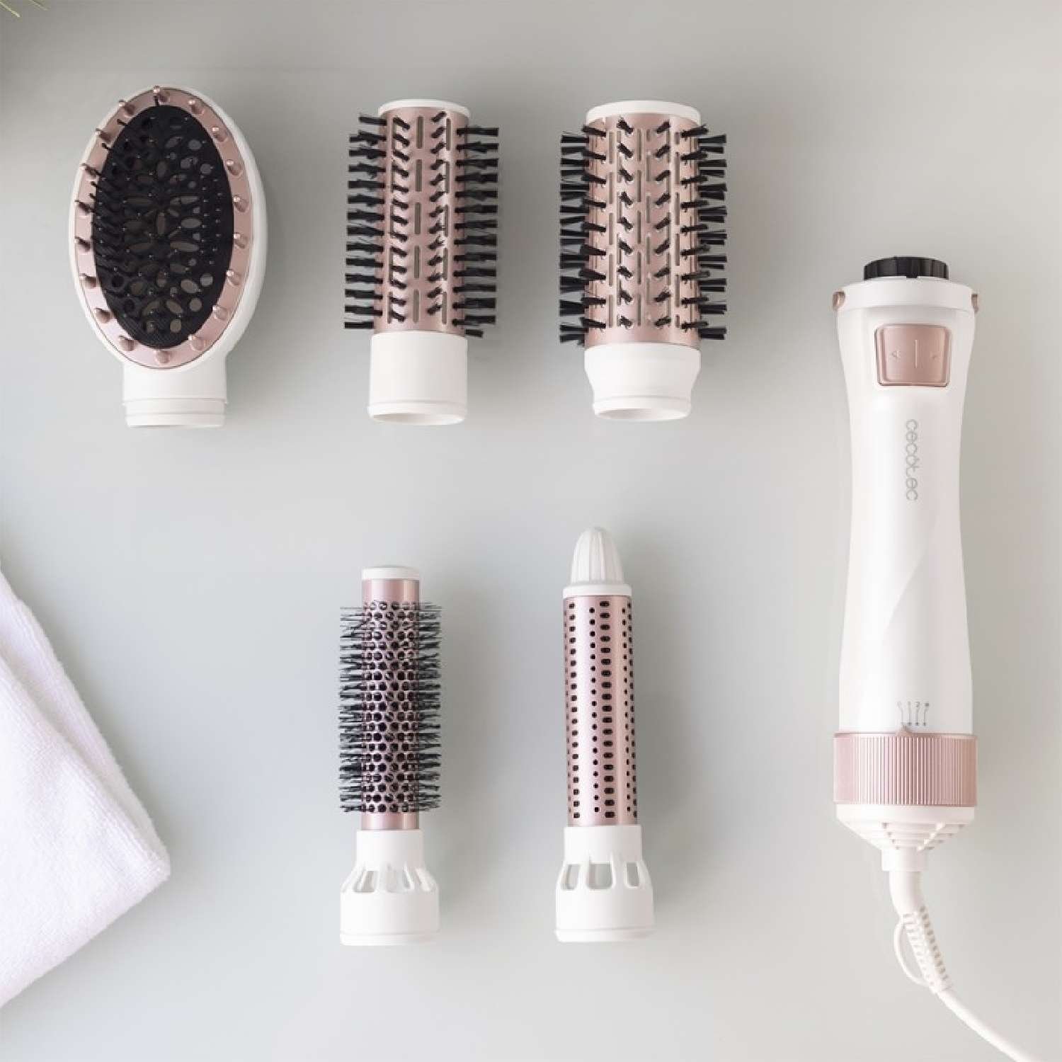 Cepillo de aire con giro y 5 cabezales intercambiables.