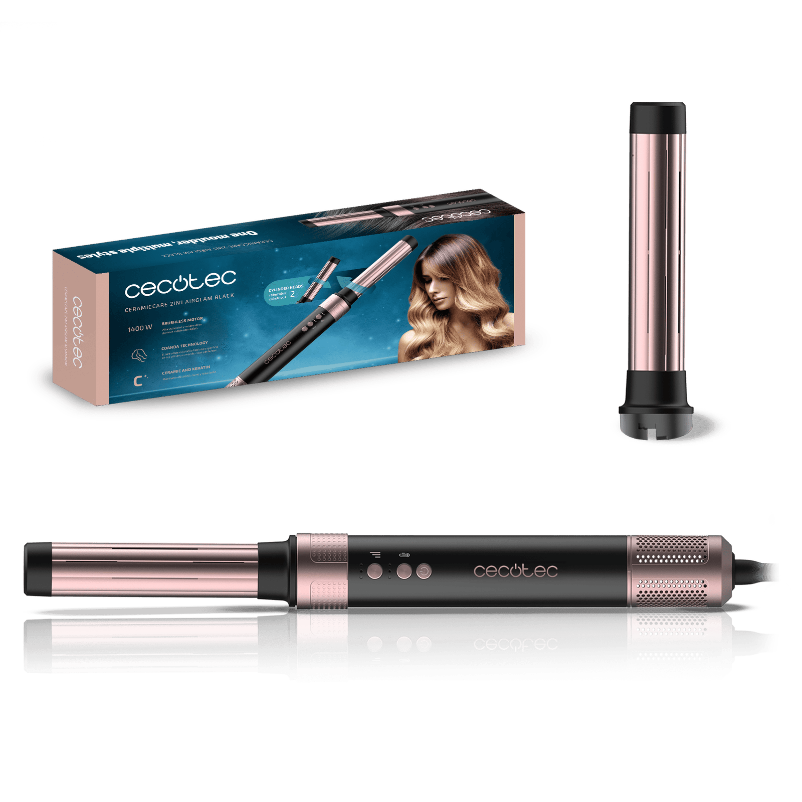 – Tecnología Coanda: el aire sigue la superficie de los dos cilindros rizadores envolviendo el cabello alrededor del moldeador y creando rizos perfectos sin esfuerzo.