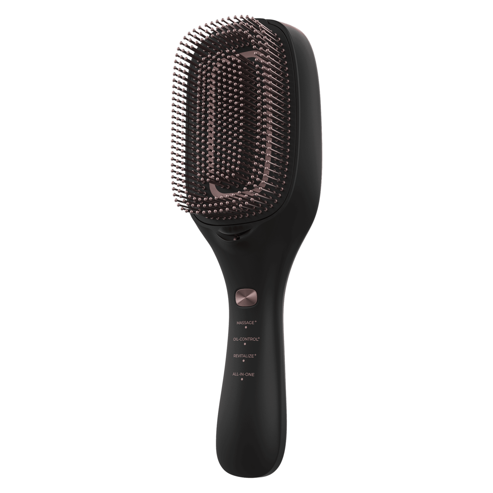 Cinco tecnologías innovadoras en un solo cepillo. Este cepillo multifuncional integra cinco tecnologías revolucionarias que se dividen en cuatro modos distintos: Massage, Oil Control, Revitalize y All-in-one. Cada modo está diseñado para abordar necesidades específicas de tu cabello y cuero cabelludo, ofreciendo una experiencia personalizada de cuidado capilar.