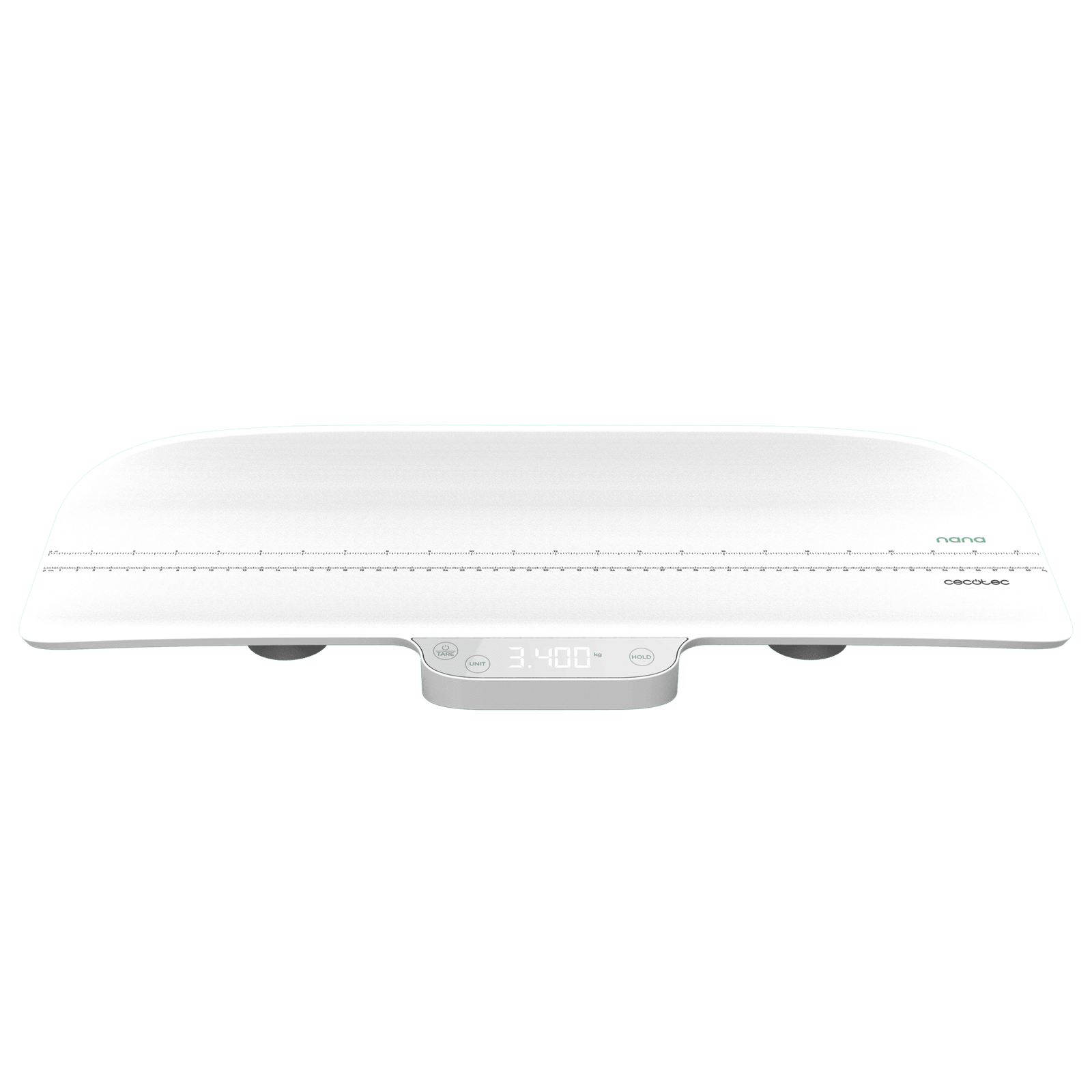 Báscula de bebé que mide hasta 40 kg, con metro incorporado (hasta 60 cm), apagado automático, función de tara y hold y pantalla LED.