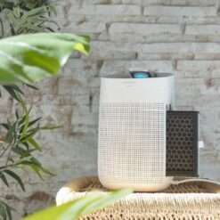 Deshumidificador Peltier + Purificador de aire de diseño con una capacidad de deshumidificación de 750 ml/día. Triple proceso de filtración (prefiltro, filtro de alta eficiencia y filtro de carbono). Gran depósito de 1 litro. Cobertura de 25 m², 3 velocidades, control táctil y silencioso.