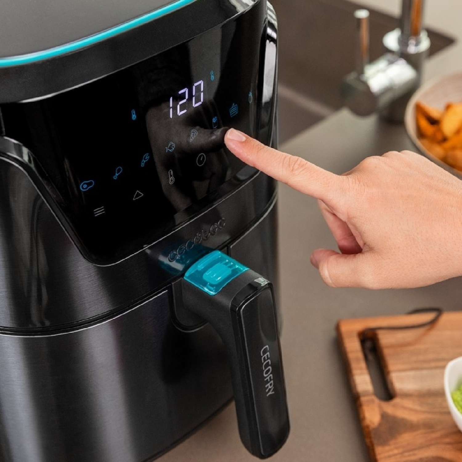 Freidora dietética digital, con acabados en acero inoxidable, sin aceite de 3,5 L de capacidad, con cestillo extraíble y tecnología PerfectCook