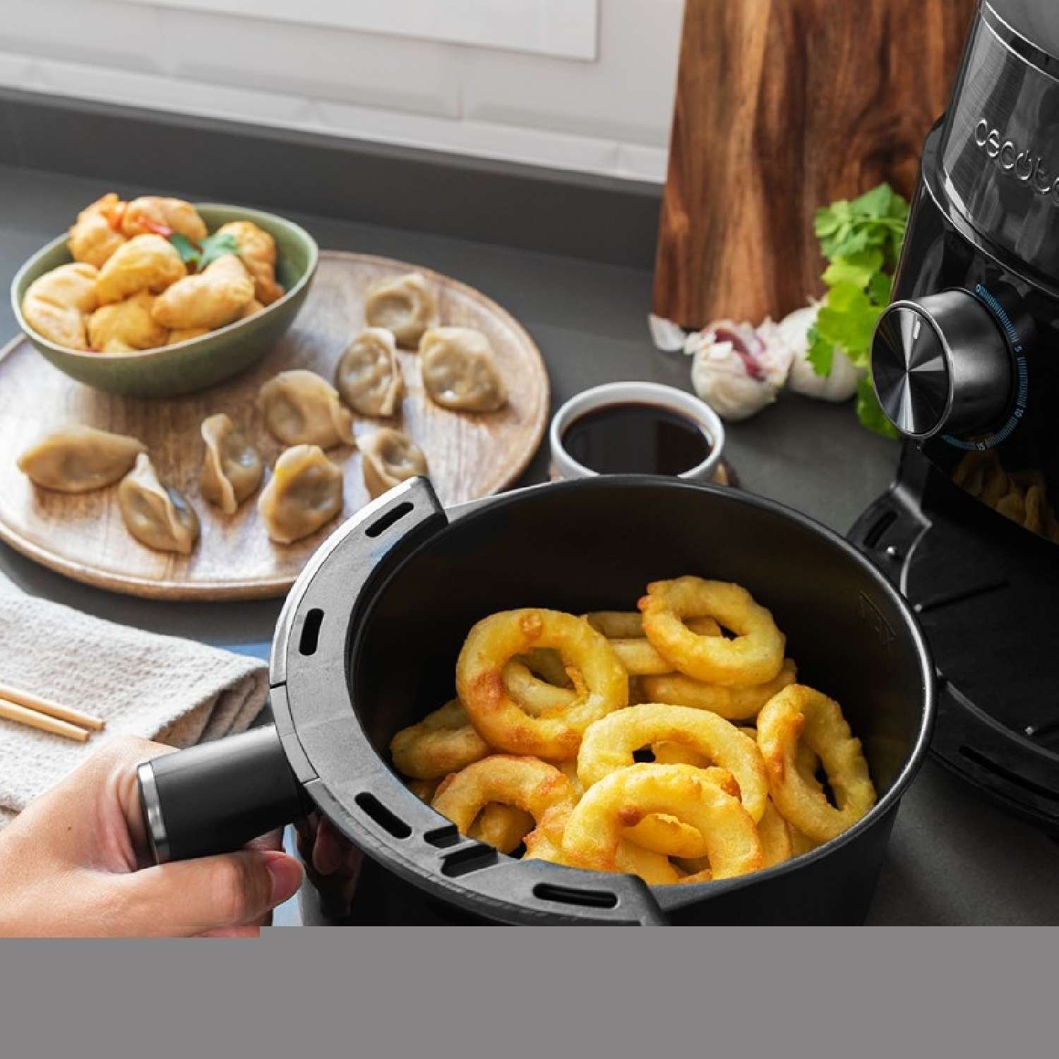Freidora dietética que permite cocinar con una sola cucharada de aceite, consiguiendo unos resultados más sanos.