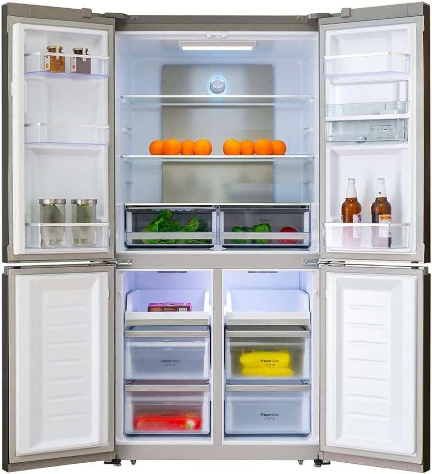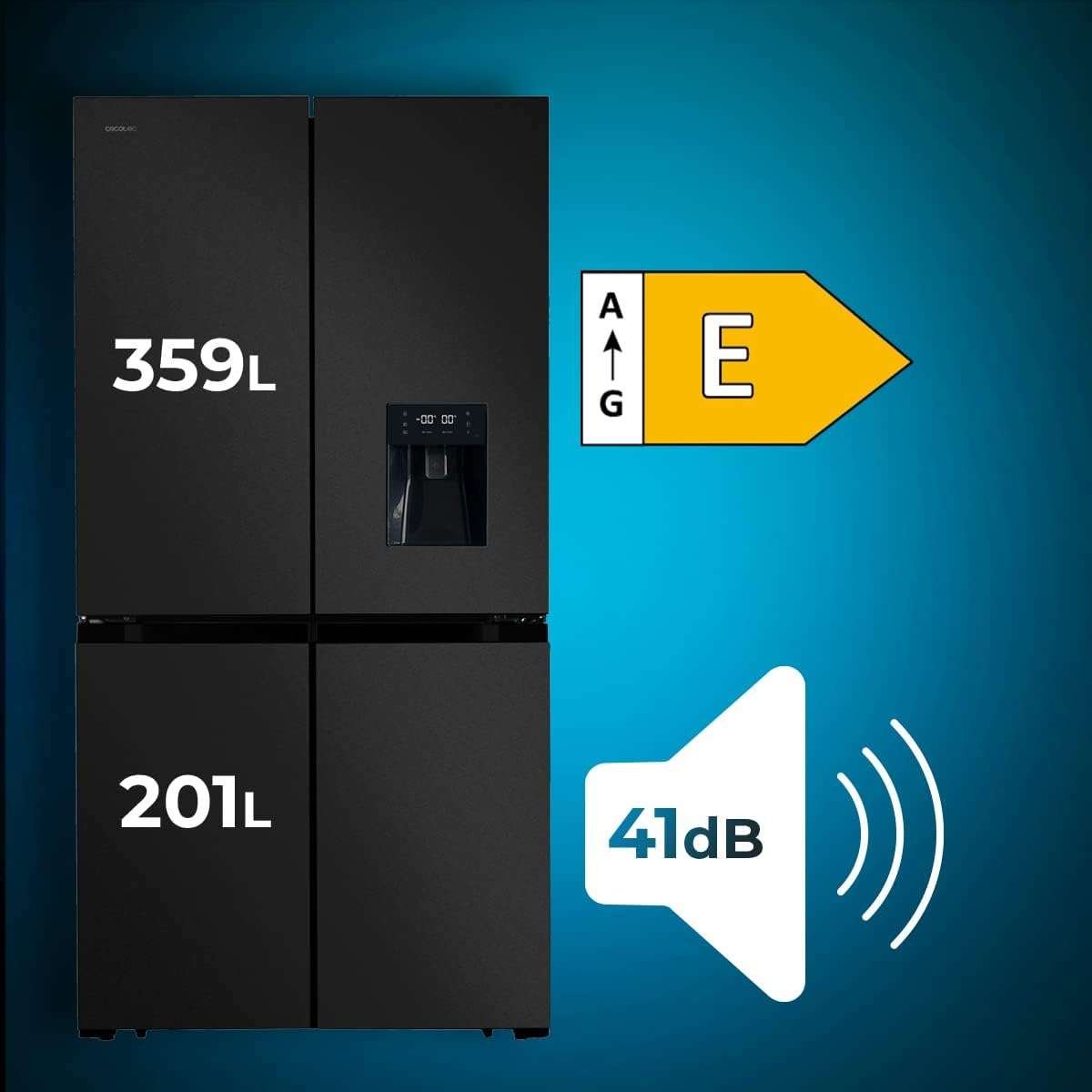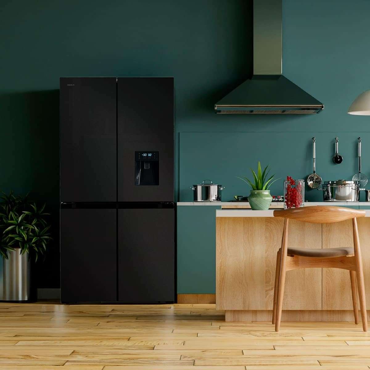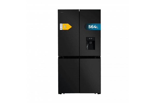 Bolero CoolMarket 4D 564 Dark E Frigorífico 4 puertas Dark con una gran capacidad de 564 L, 183 cm de alto, 91 cm de ancho, con dispensador de agua, clase energética E y motor inverter plus. Además, cuenta con distintos modos como Fast Cooling y Fast Freezing, así como sistemas como MultiAirFlow, Total NoFrost o Metal Cooling.