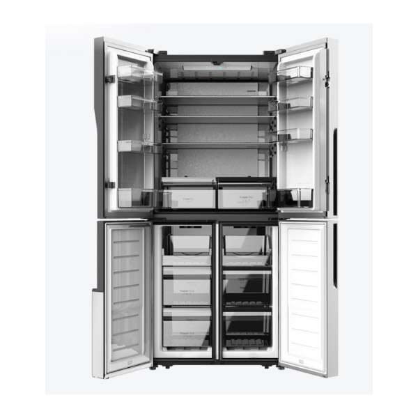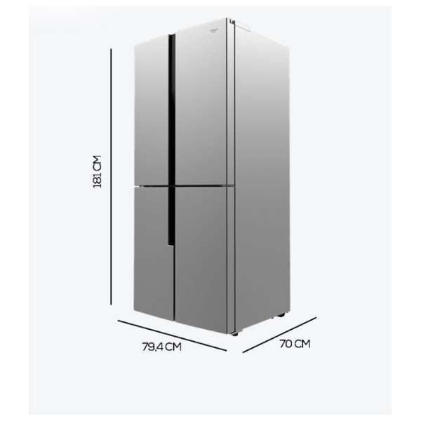 Frigorífico 4 puertas acero inoxidable, con una gran capacidad de 454L, 179,3 cm y compresor inverter, que cuenta con distintos sistemas como MyFreshChoice, Modo Vacaciones, SuperCongelacion, SuperEnfriamiento, así como sistemas como LECO, MultiAirFlow, TotalNoFrost o MetalCooling