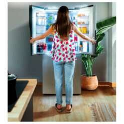 - Cross door: el diseño de la puerta favorece la comodidad de uso y el ahorro de energía, ya que al permitir abrir por zonas, manteniendo así mejor el frío. Comodidad a la hora de colocar los alimentos y mayor facilidad de acceso a todos los productos sin tener que abrir todo el compartimento.