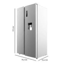 Frigorífico americano Side by Side Inox con 559 litros de capacidad, 177 cm de alto y 90 cm ancho, clase D, con sistema Multi Air Flow , total No frost, motor inverter plus.