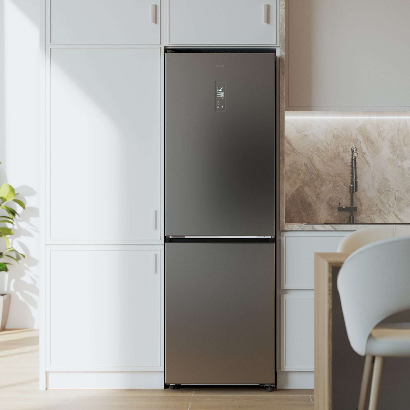 – El diseño compacto de 185 x 59,5 cm se adapta a cualquier espacio, mientras que el sistema Multi AirFlow garantiza una temperatura homogénea. Las funciones Fast Cooling y Fast Freezing te permiten enfriar y congelar rápidamente, conservando la frescura de tus alimentos.