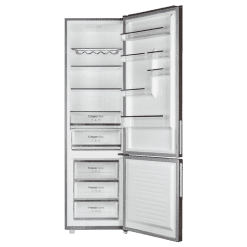 Combi con Capacidad 356 L. Multi Airflow. Total No Frost. Humidity/Crisper box, LED interior, Puerta reversible, Alarma de puerta, Control de temperatura, Inverter Plus. Modo eco, Modo vacaciones, fast freezing y cooling, Display en la puerta. Color cristal Gris Clasifición energética D. Ancho 59,5 /Fondo 63,5 /Alto 200cm