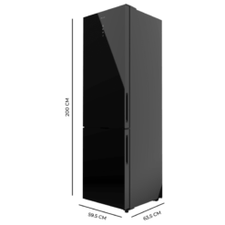Bolero CoolMarket Combi 356i Black Glass E – Frigorífico Combi Cristal Negro, 356L, Ancho 59,5cm, Alto 200cm, Total NoFrost, Multi Airflow, Fast Freezing, FreshnessFlex HUB, HumidityFlex HUB y Puerta Reversible – Iluminación LED y Display Interior