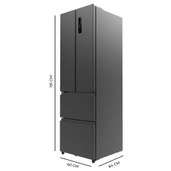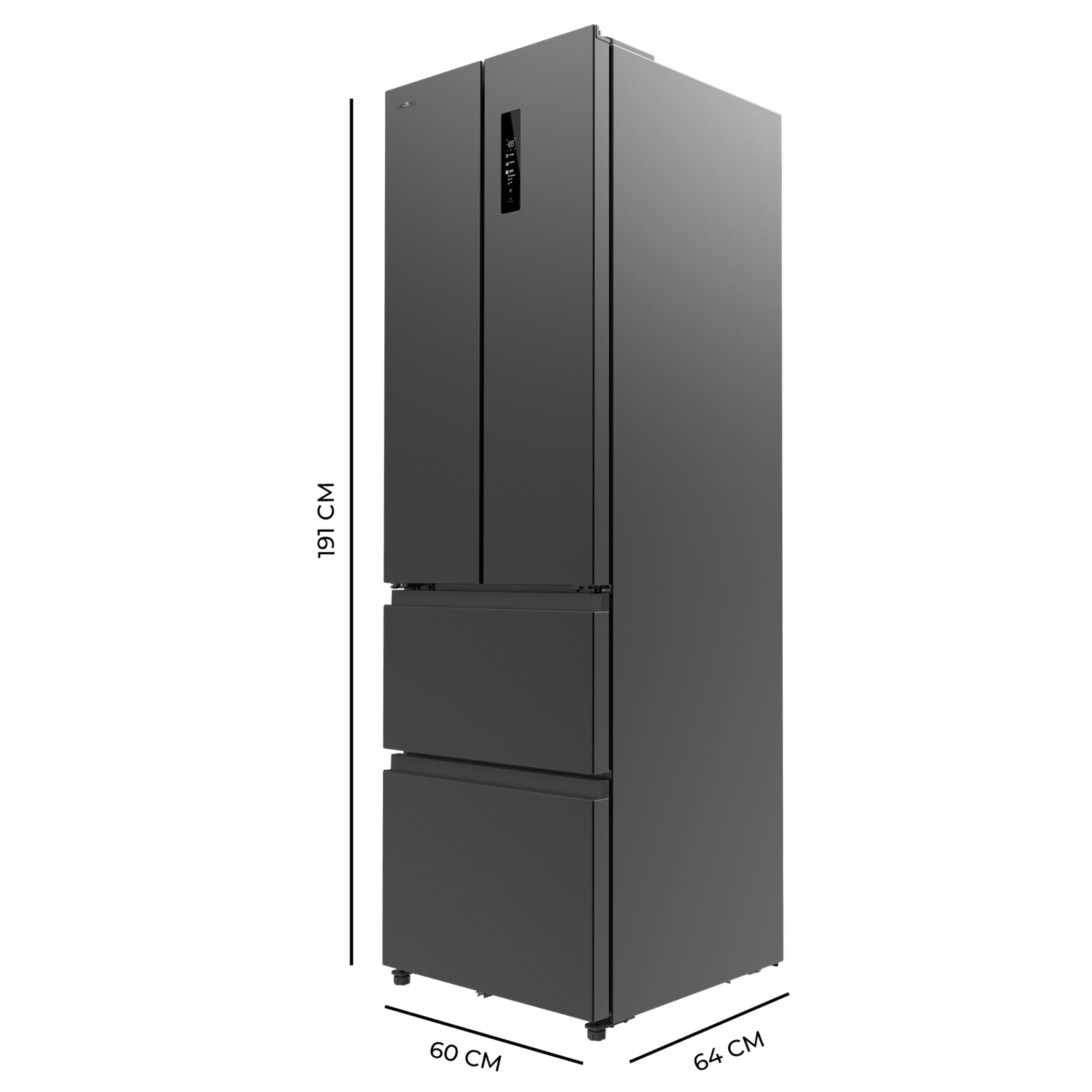 Frigorífico Combi French Door 4 Puertas Acero Inoxidable oscuro, 400 Litros, 60×191 cm, NoFrost, Multi AirFlow, Display, Interior Premium Color Gris, Cajón Convertible,Clase E, Motor Inverter, Fast Cooling, Fast Freezer, Modo ECO, Alarmas puerta abierta, temperatura y fallo.