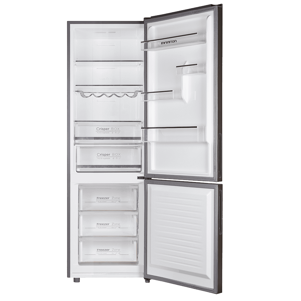 El frigorífico de cristal Infiniton FGC-856X se caracteriza por tener una capacidad de 315 Litros . Gracias a su clasificación energética E percibirás un importante ahorro energético en tu factura de la luz.