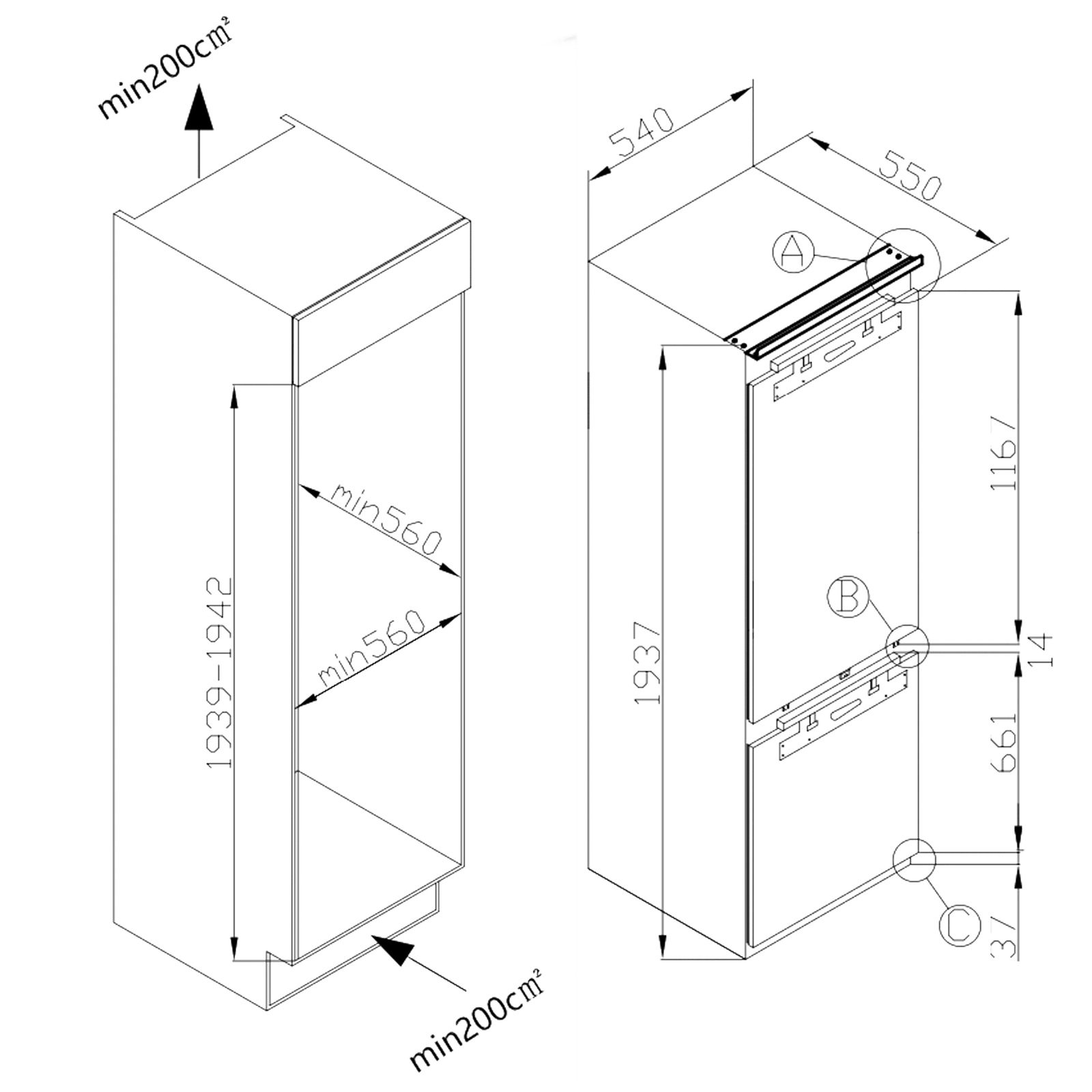 Frigorífico integrable, Manual., kit de instalación