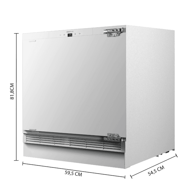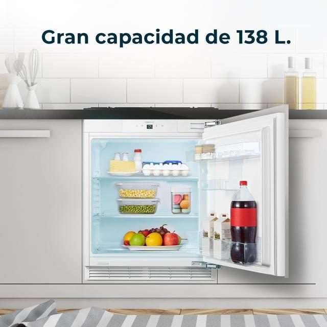 Mini frigorífico integrable de 138 litros de capacidad, clase E, display touch y Fast Cooling. Ancho 59,2 /Fondo 54,5 /Alto 84,5cm