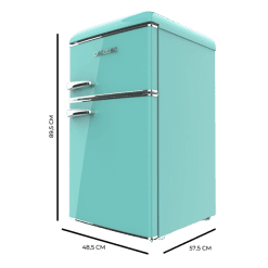 Mini frigorífico retro 2D Origin Green con capacidad de 85L, LED interior, tirador cromado & bandejas cristal, abridor botellines. Ancho 48,7 /Fondo 59,2 /Alto 89,3cm