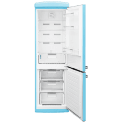Frigorífico retro combi azul, 190cm de alto y 60 de ancho, capacidad 294L, Total No Frost, clase energética E, Multi Cooling, Ultra Fresh, Convertible Box, Multi Air Flow, Fast Freezing, Modo Eco, Botellero y Alarma en puerta.