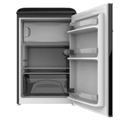 Mini frigorífico retro TT Origin Black con capacidad de 110L, clase E, ICEBOX, LED interior, tirador cromado & bandejas cristal, abridor botellines. Ancho 55,2 /Fondo 61,7 /Alto 90cm