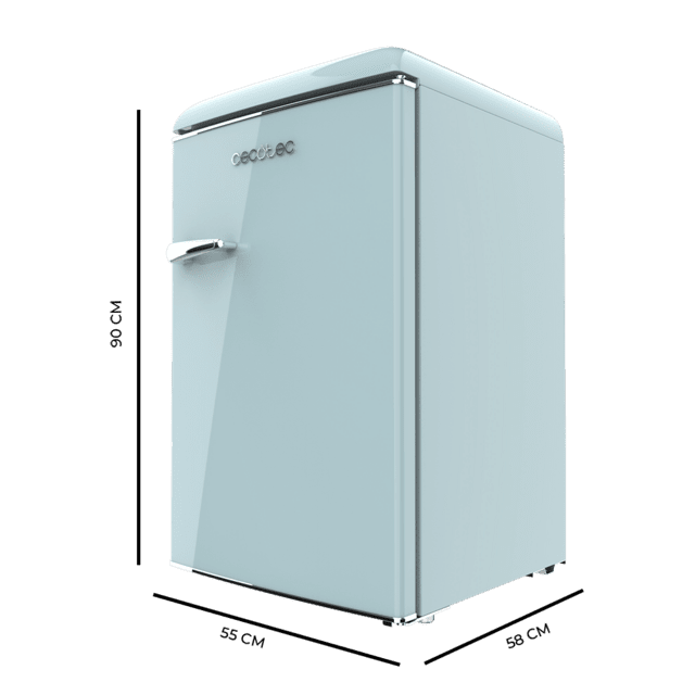 Mini frigorífico retro TT Origin Blue con capacidad de 110L, clase E, ICEBOX, LED interior, tirador cromado & bandejas cristal, abridor botellines. Ancho 55,2 /Fondo 61,7 /Alto 90cm