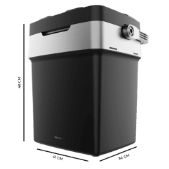 Frigorífico de viaje TravelCooling 26 litros, funcionamiento 12V-220V, compatible con coches y caravanas, función enfriamiento y calentamiento, rango temperatura 8-65º y aislamiento espuma PU. Ancho 41 /Fondo 32 /Alto 46cm