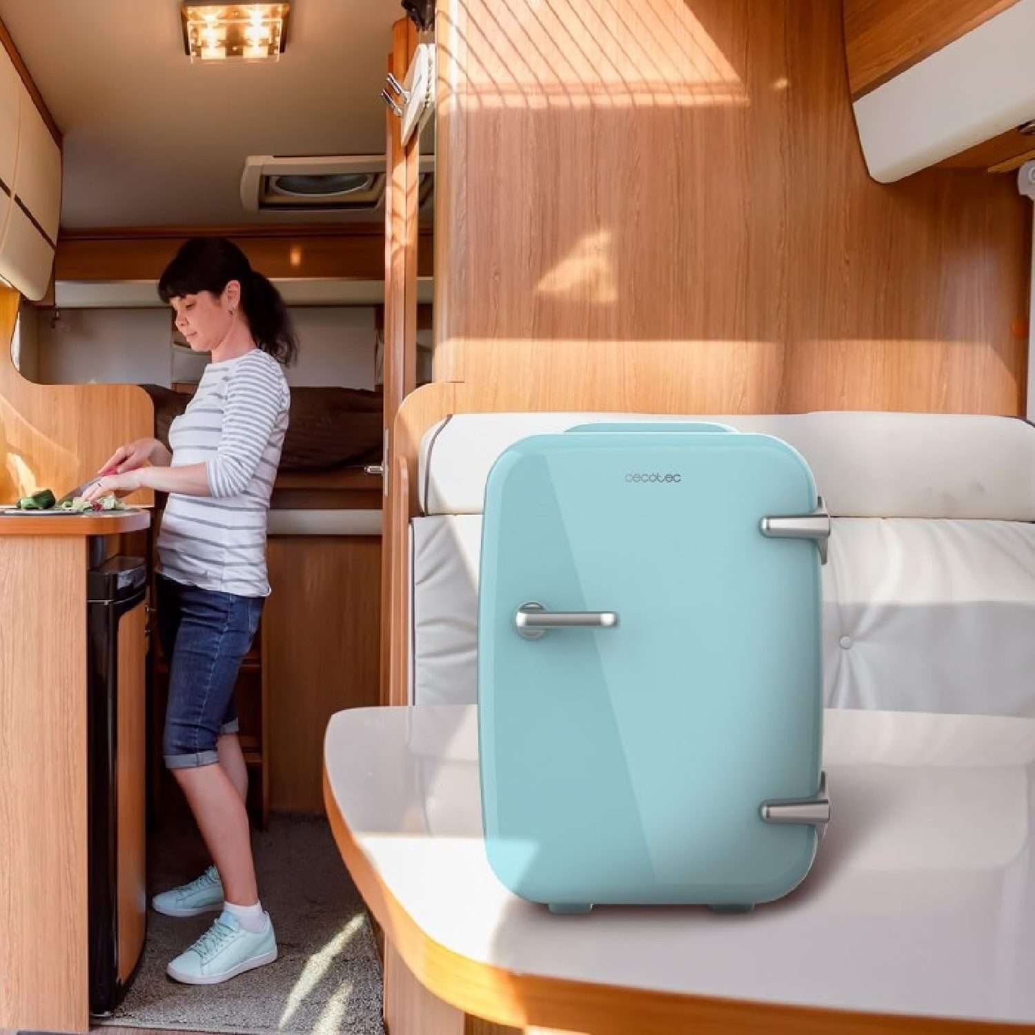 Frigorífico retro Habana Light Blue 4 Litros, funcionamiento 12V-220V, compatible coche y caravanas, función enfriamiento y calentamiento, rango temperatura 7-65º, transporte fácil. Ancho 25 /Fondo 19 /Alto 27,5cm