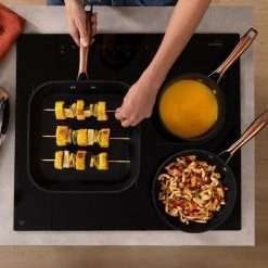 Grill de 28 cm de aluminio FORJADO, con revestimiento antiadherente de alta calidad Platinum Plus Teflon™ Nonstick Coating, 100 % libre de PFOA. Mango remachado semiprofesional de acero inoxidable en color oro rosa. Fondo difusor de calor Full Induction. Apto para horno hasta 230ºC, apto para lavar en lavavajillas y para todo tipo de cocinas incluida inducción. Compuesto por 5 capas y con 3,5 mm de base para inducción.