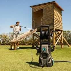 HydroBoost 2000 Car&Garden Hidrolimpiadora Especial para el hogar, el jardín o el coche. Potente, eficaz y fácil de transportar. Potencia máxima de 2000 W. Caudal máximo de 450 l/h. 150 bares de presión máxima admitida. Bomba de aluminio. Radio de acción 14 m.
