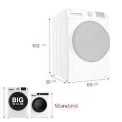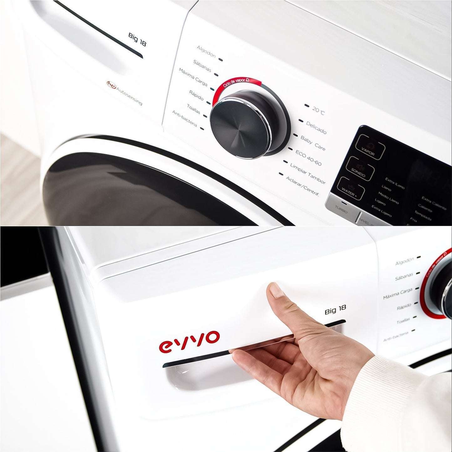 La lavadora EVVO BIG 18 incorpora un enorme tambor con una capacidad de carga de hasta 18 Kg. Es capaz lavar prendas de gran tamaño de una manera más delicada, sin dañarla ni desgastarla.