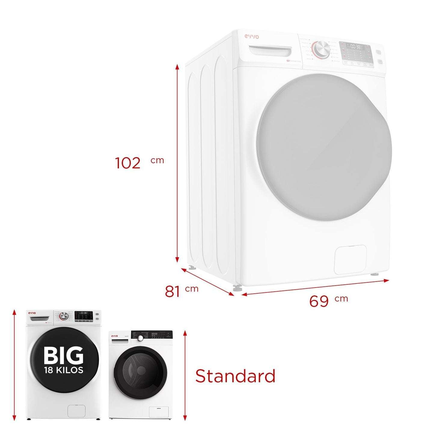 Lavadora EVVO Big 18 Inverter de 18Kg