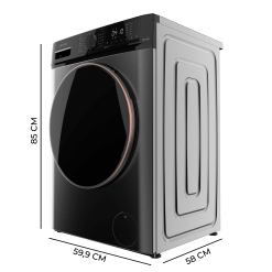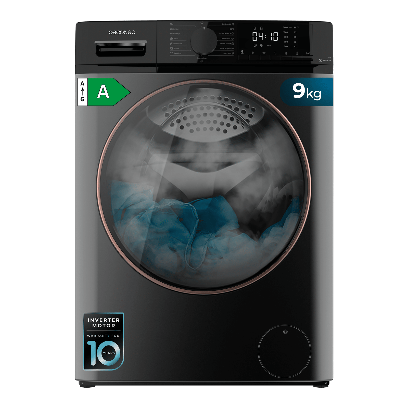 Lavadora de carga frontal steel de 9 Kg de capacidad, 1400 RPM, Clase A, Steam Max, Motor inverter plus, 15 programas, OnSmart, Fuzzy Logic, Smooth Wash, Stop&Go, Goma antibacteriana y Drum Clean.
